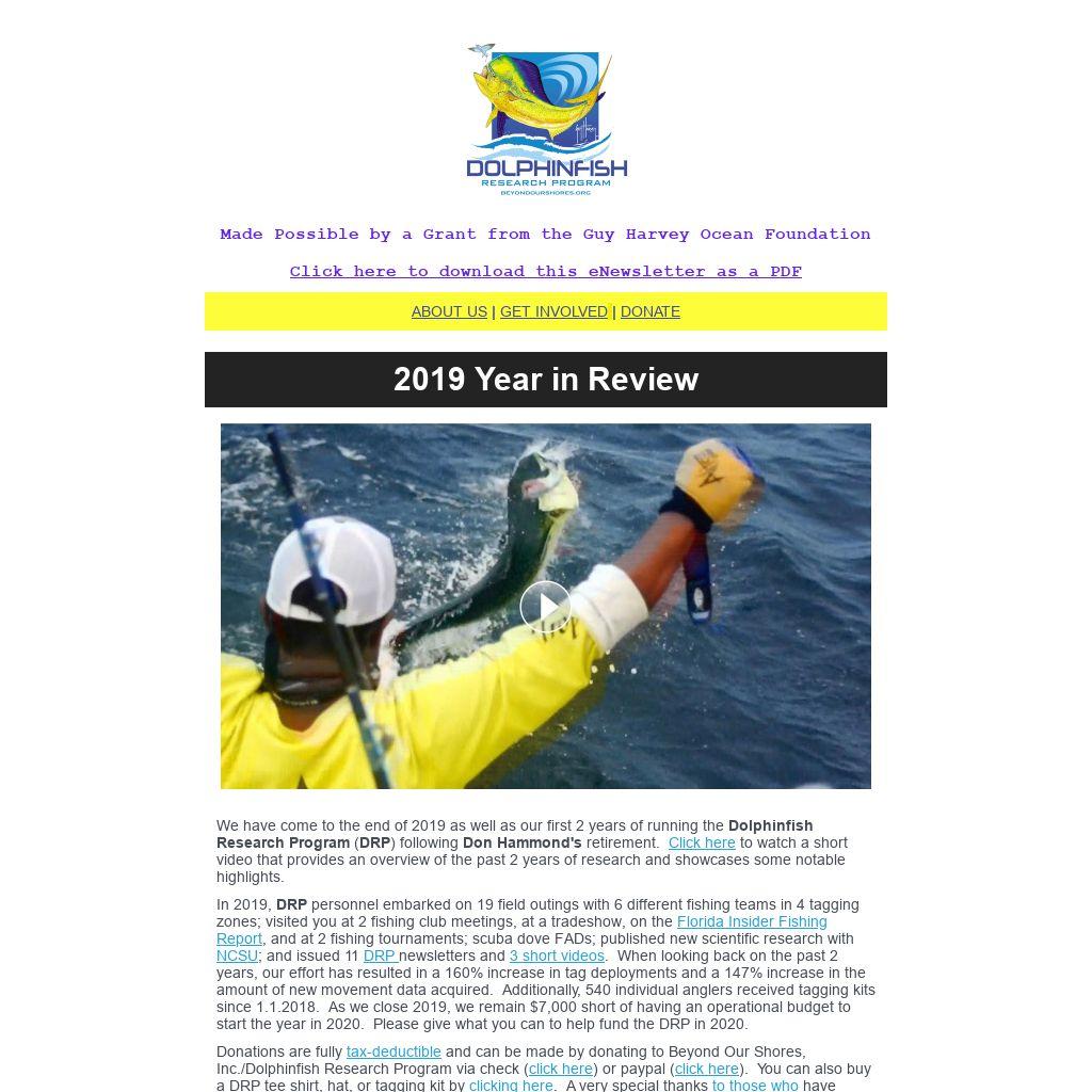 We have come to the end of 2019 as well as our first 2 years of running the Dolphinfish Research Program ( DRP) following Don Hammond's retirement. Click here to watch a short video that provides an overview of the past 2 years of research and showcases some notable highlights.