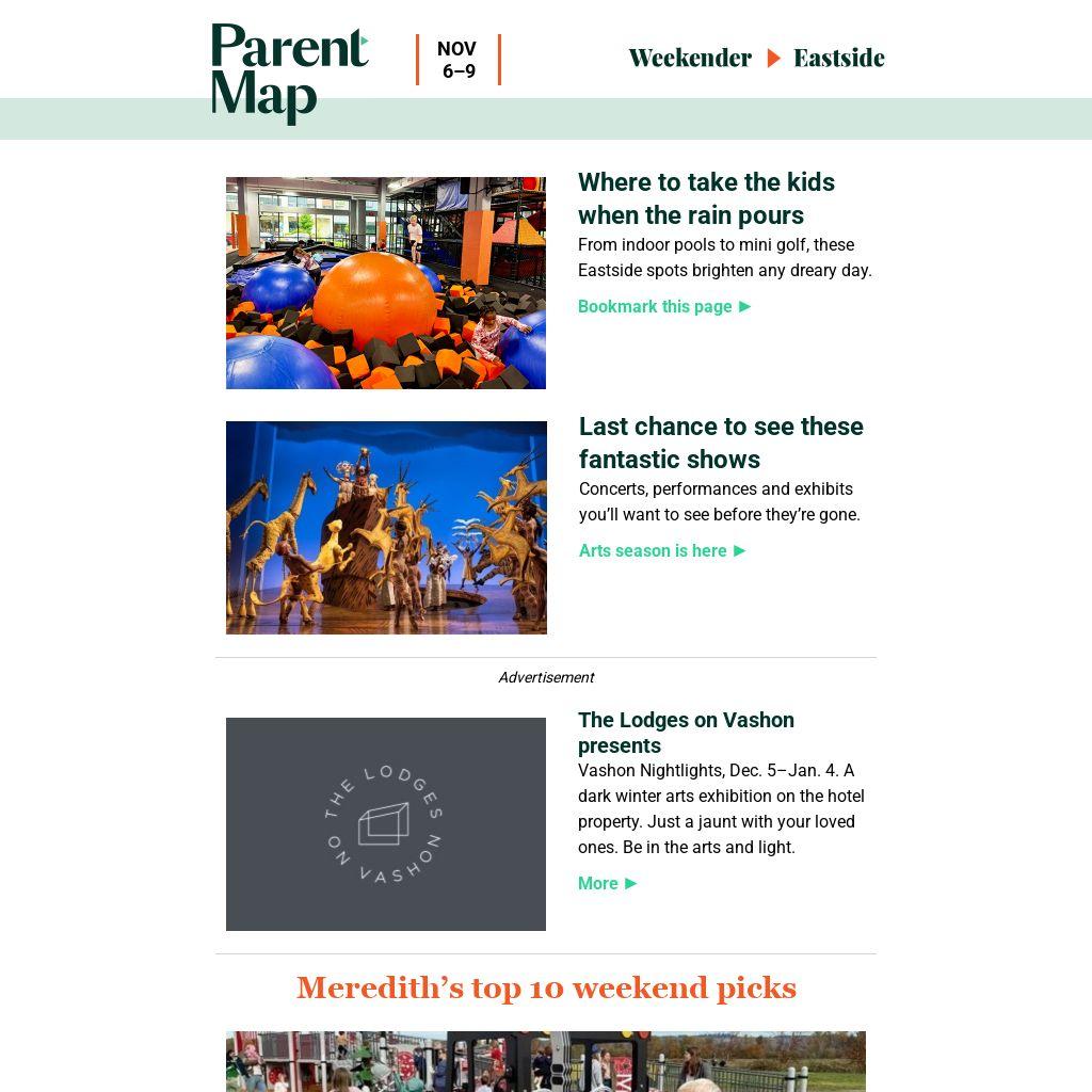 Can't buy our love! ParentMap never sells our good reviews or recommendations for events. Our opinions aren't for sale, and we think that matters. Find more great events on our Family Fun Calendar. To submit an event, fill out our online form.