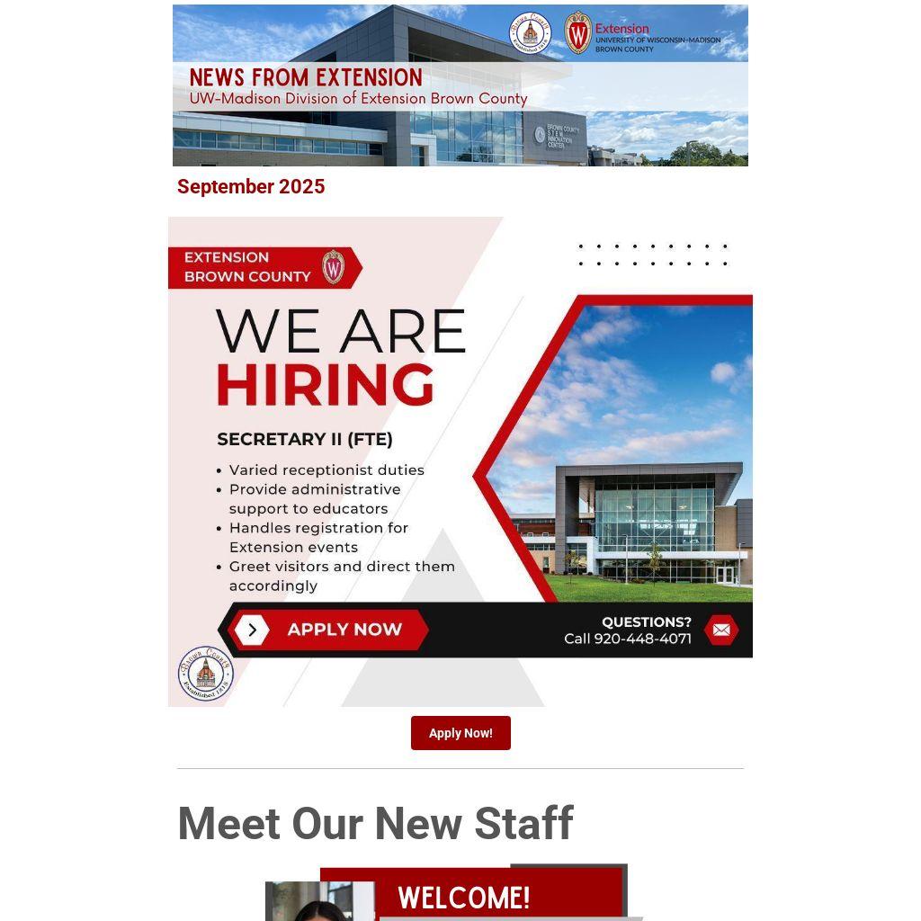 We are excited to welcome Madeline Gonzalez as the new Marketing and Communication Intern for the Fall 2025 semester at UW–Madison Division of Extension in Brown County. In this role, Madeline will support the promotion of Extension programs through strategic content creation, social media management, and community outreach. Her responsibilities will include designing promotional materials, writing articles and social media posts, and assisting with events to foster community engagement.