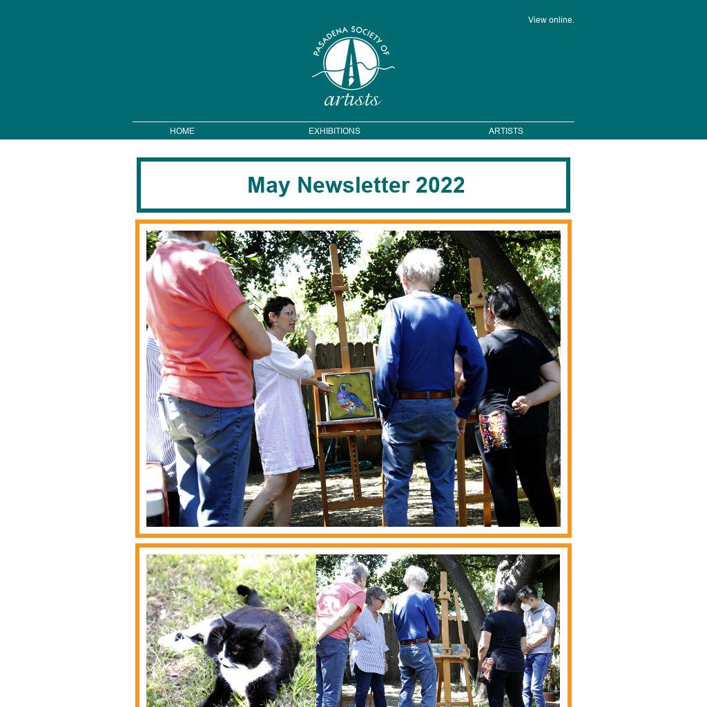 Saturday, May 14, 2022 3061 Ridgeview Drive Altadena, CA 91001 10:00 am - 12:00 pm Please bring a finished or unfinished piece of your artwork for the critique portion of the meeting.