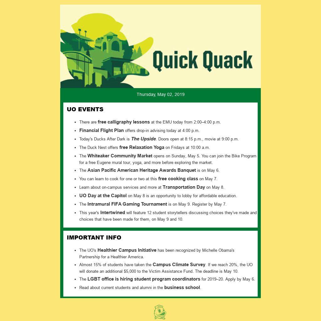 Almost 15% of students have taken the Campus Climate Survey. If we reach 20%, the UO will donate an additional $5,000 to the Victim Assistance Fund. The deadline is May 10.