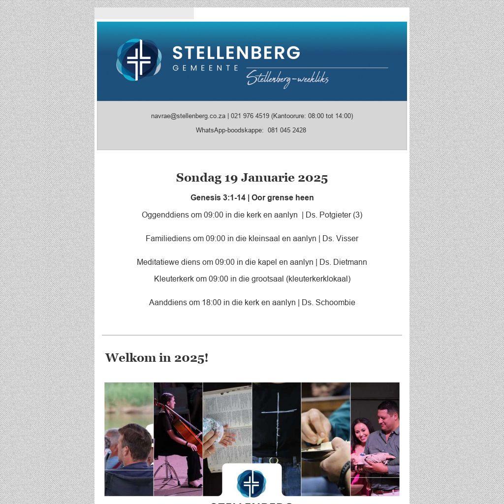 - Kleuterkerk om 09:00 in die kleuterkerklokaal, tydens skoolkwartale. ’n Bybelles wat met ’n kreatiewe aktiwiteit gepaardgaan, word vir kleuters en peuters aangebied.