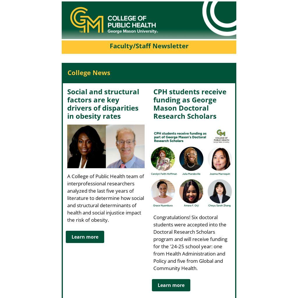 | CPH students receive funding as George Mason Doctoral Research Scholars |