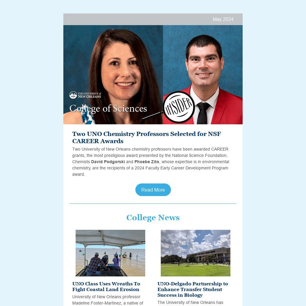 Two UNO Chemistry Professors Selected for NSF CAREER Awards |
