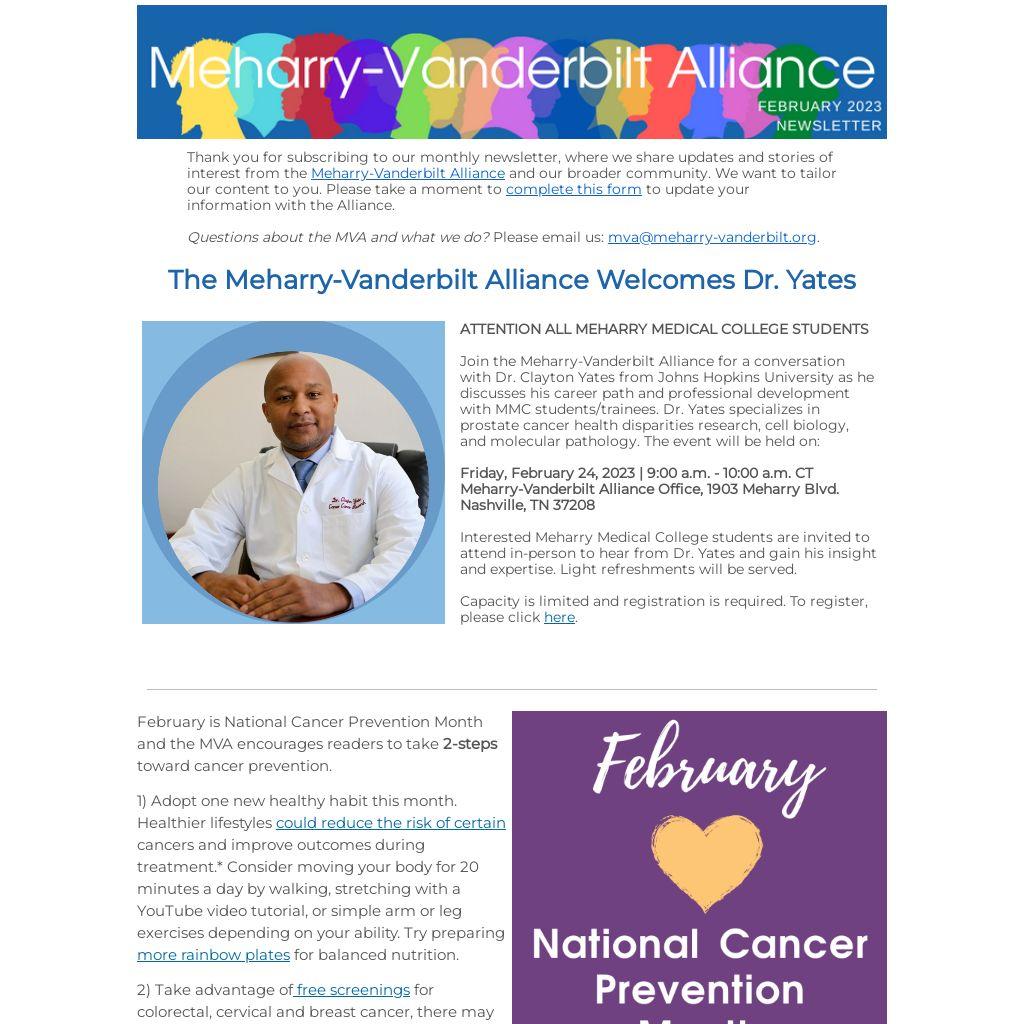 Thank you for subscribing to our monthly newsletter, where we share updates and stories of interest from the Meharry-Vanderbilt Alliance and our broader community. We want to tailor our content to you. Please take a moment to complete this form to update your information with the Alliance.