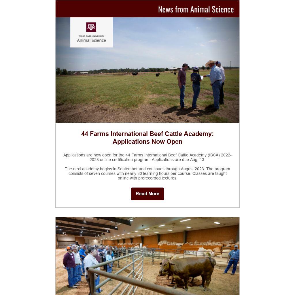 Applications are now open for the 44 Farms International Beef Cattle Academy (IBCA) 2022-2023 online certification program. Applications are due Aug. 13.