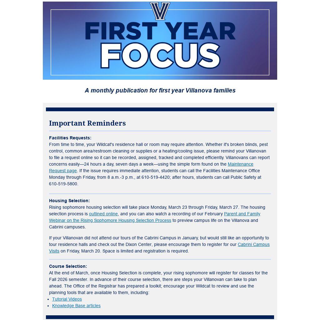 A monthly publication for first year Villanova families