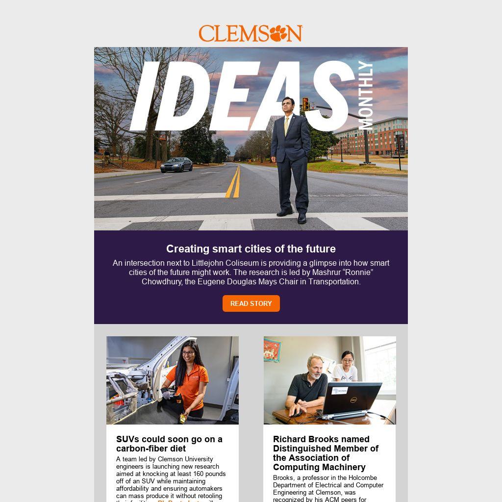 This issue also features our research efforts in such cutting-edge areas as the smart cities of the future and the potential impact of an extinct river on our climate, in addition to highlighting the United Nations International Year of Glass and its recognition of John Ballato as a leader in the field of fiber optics. As the J. E. Sirrine Endowed Chair in Optical Fiber, he is credited with developing the University’s world-class fiber optics program.