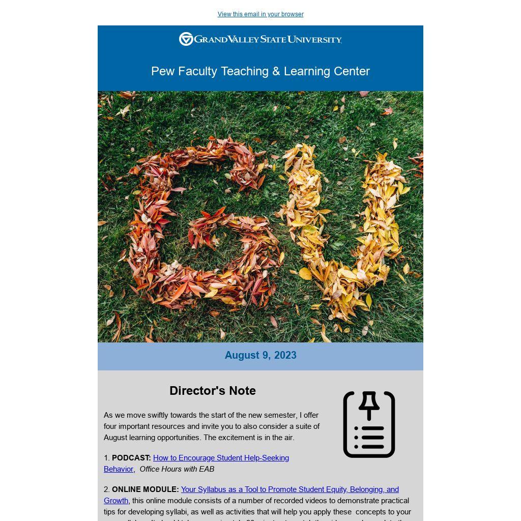 As we move swiftly towards the start of the new semester, I offer four important resources and invite you to also consider a suite of August learning opportunities. The excitement is in the air.