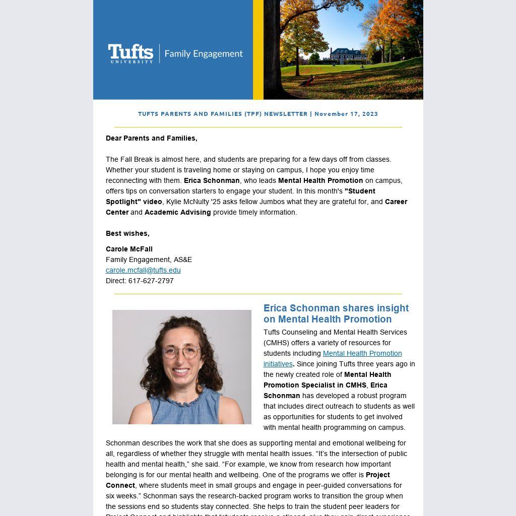 TUFTS PARENTS AND FAMILIES (TPF) NEWSLETTER | November 17, 2023