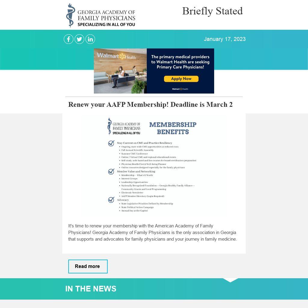 It's time to renew your membership with the American Academy of Family Physicians! Georgia Academy of Family Physicians is the only association in Georgia that supports and advocates for family physicians and your journey in family medicine.