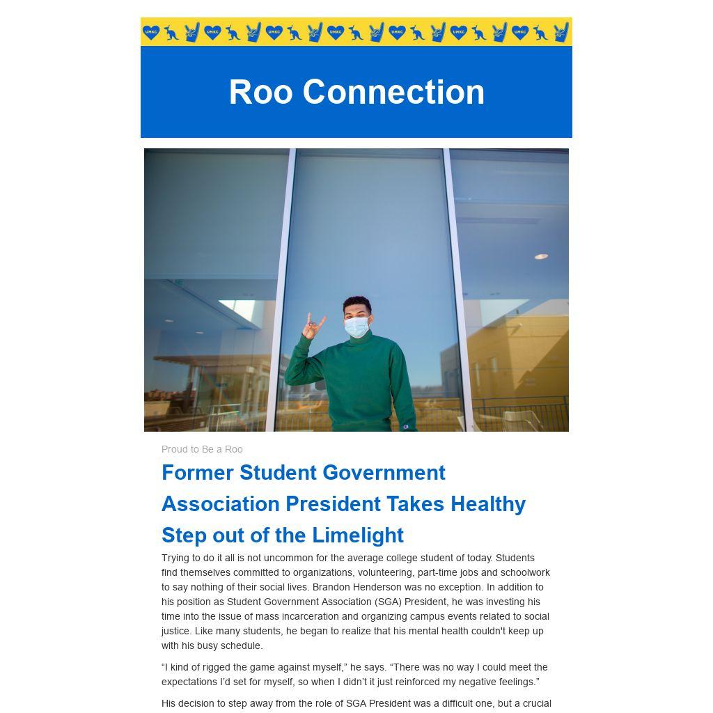 His decision to step away from the role of SGA President was a difficult one, but a crucial step in putting his mental health first. Henderson hopes that his story inspires other students to focus on their own health and find the right balance for their lives.