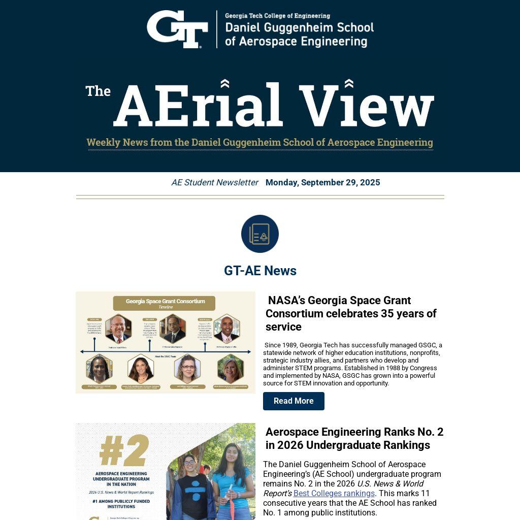 The Daniel Guggenheim School of Aerospace Engineering’s (AE School) undergraduate program remains No. 2 in the 2026 U.S. News & World Report’s Best Colleges rankings. This marks 11 consecutive years that the AE School has ranked No. 1 among public institutions.