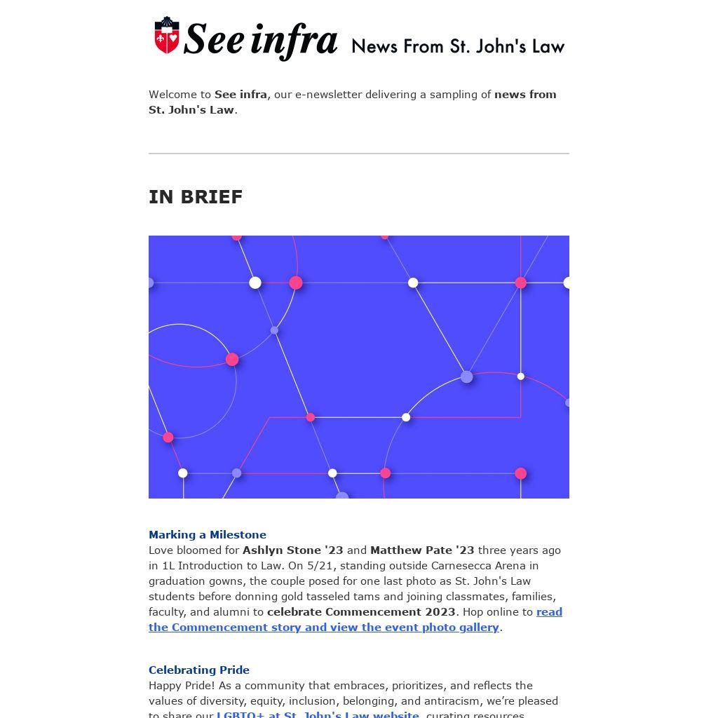 Welcome to See infra, our e-newsletter delivering a sampling of news from St. John's Law.