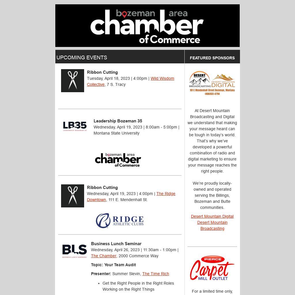 Click here to view all members currently offering a Member2Member Discount. Interested in participating in our M2M program? Please contact Karri Clark by email or phone at 922-0446.