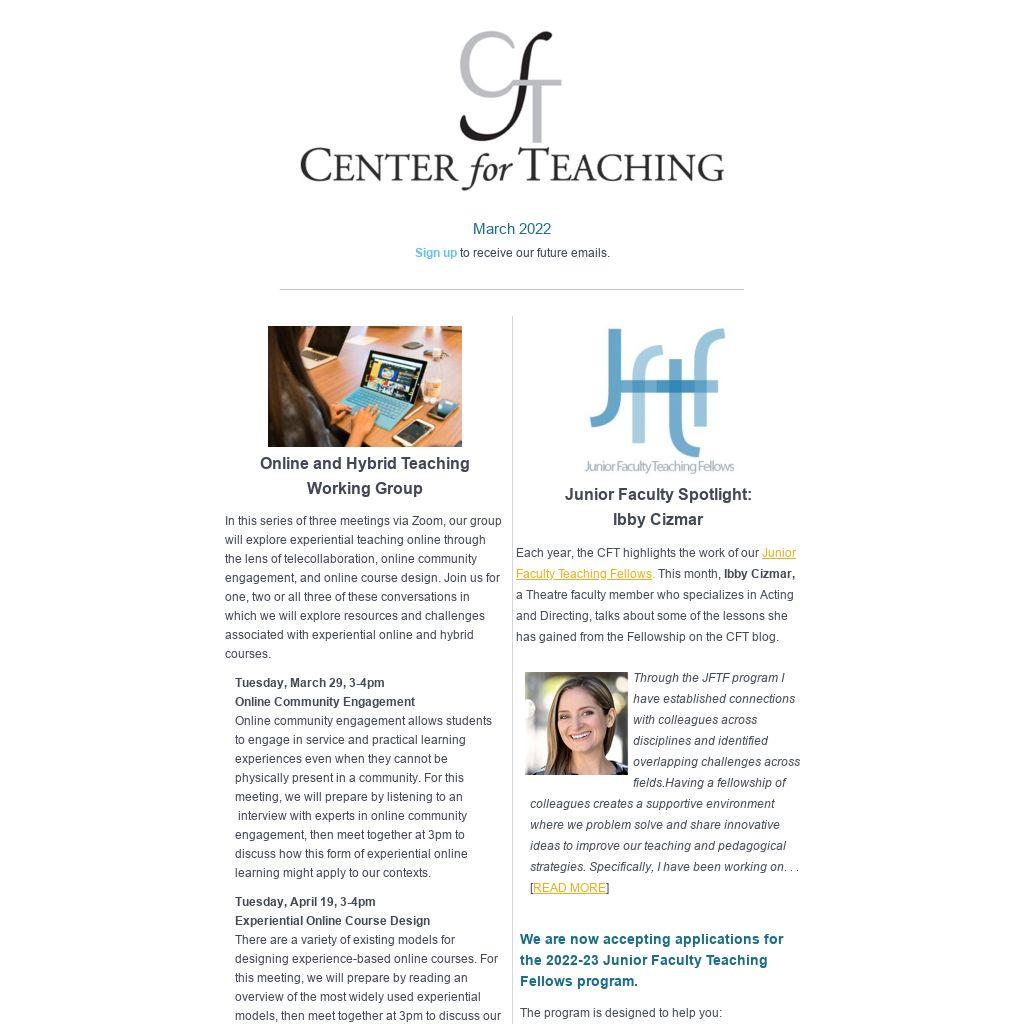 We are now accepting applications for the 2022-23 Junior Faculty Teaching Fellows program.