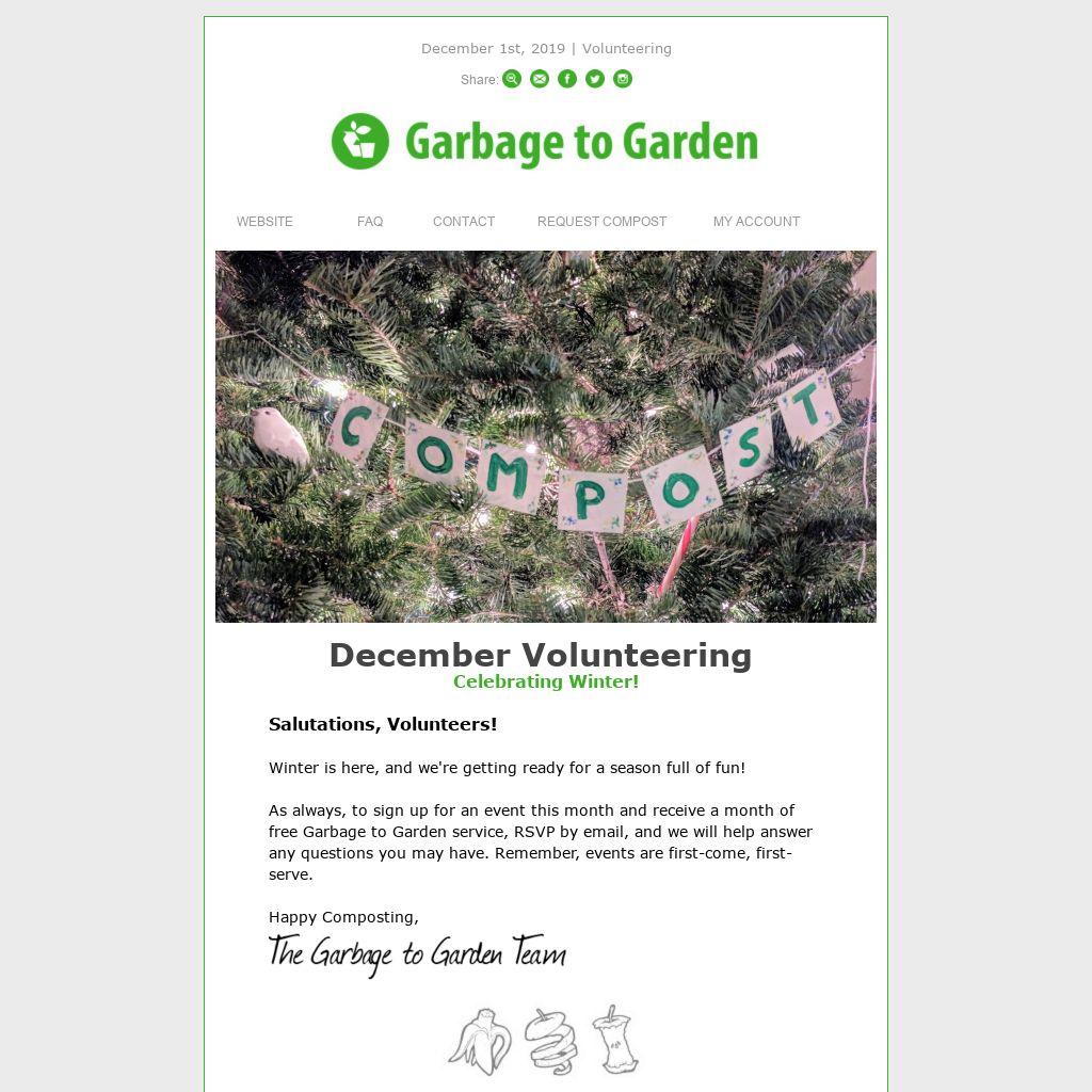 As always, to sign up for an event this month and receive a month of free Garbage to Garden service, RSVP by email, and we will help answer any questions you may have. Remember, events are first-come, first-serve.