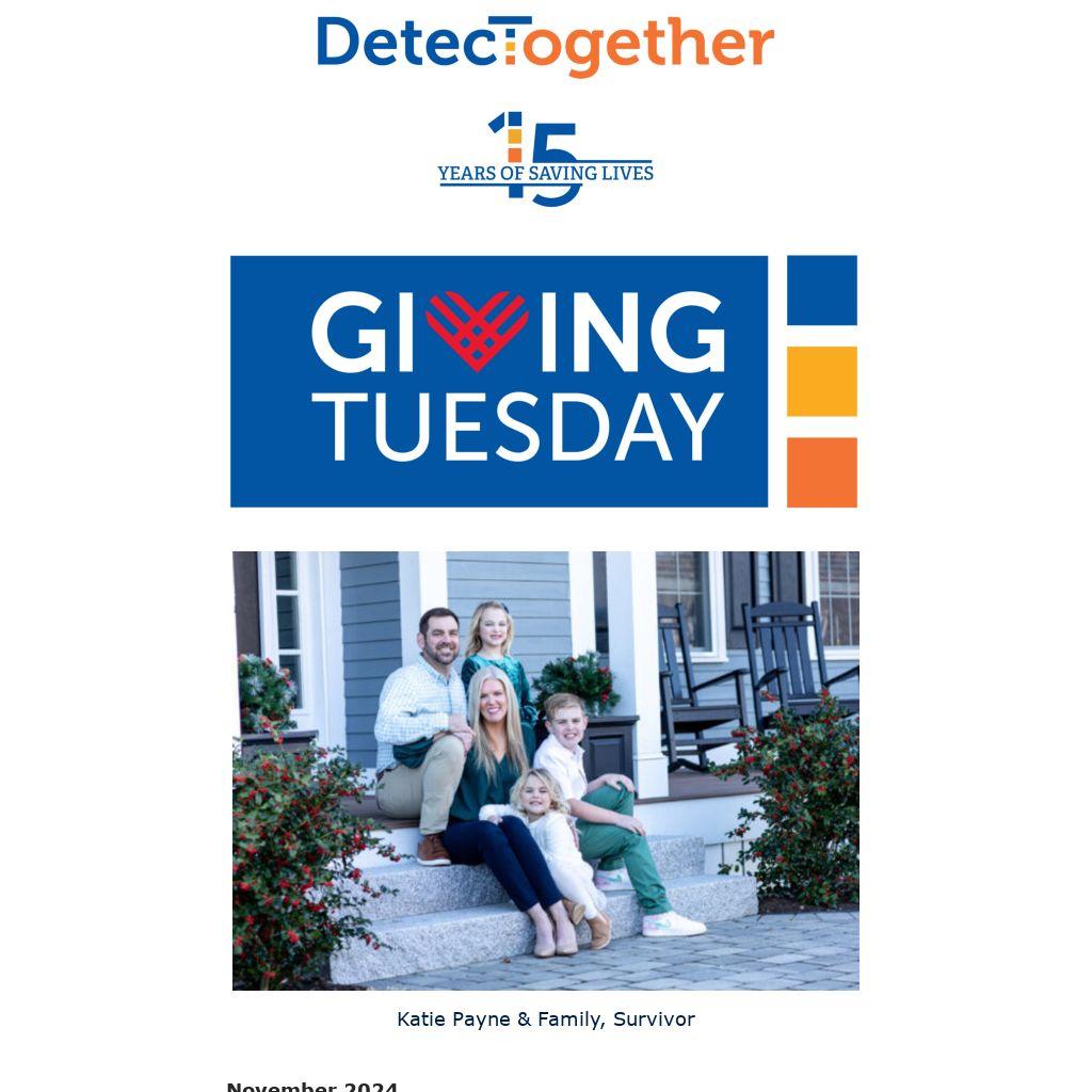 "I’m one of the 40% of us who heard the words, ‘You have cancer.’ My first thought was, Will I survive? Thanks to early detection, the answer was YES! This Giving Tuesday, you have the power to give the gift of early detection and help save lives. Donate to DetecTogether today and give more people a lifetime of tomorrows!"