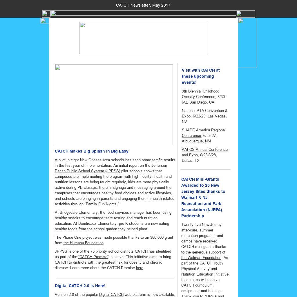 The CATCH Newsletter comes to you from Kathy Chichester, the National CATCH Coordinator, and Laura Aavang, Communications Specialist. Have a great story about how you've used CATCH, or how it's touched your community? Share it with us!