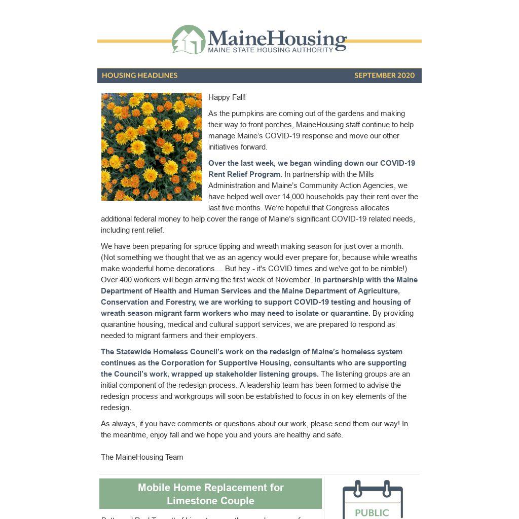 As the pumpkins are coming out of the gardens and making their way to front porches, MaineHousing staff continue to help manage Maine’s COVID-19 response and move our other initiatives forward.