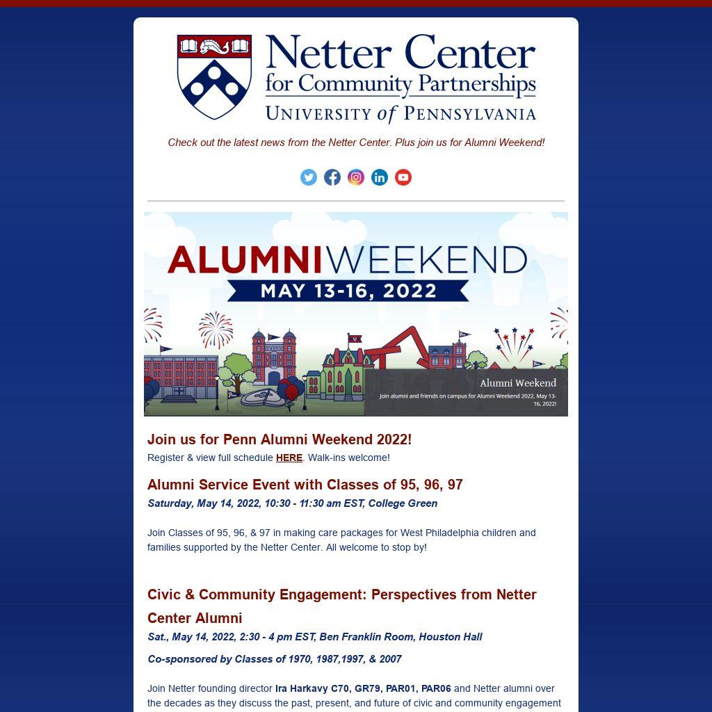 Check out the latest news from the Netter Center. Plus join us for Alumni Weekend!