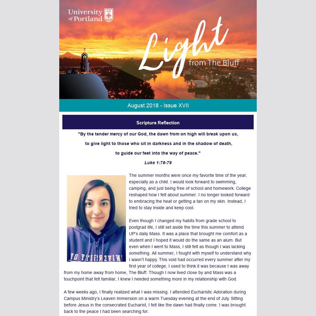 Would you like to contribute a scripture reflection for an upcoming issue of Light from The Bluff? Email kuenzi@up.edu for more information.