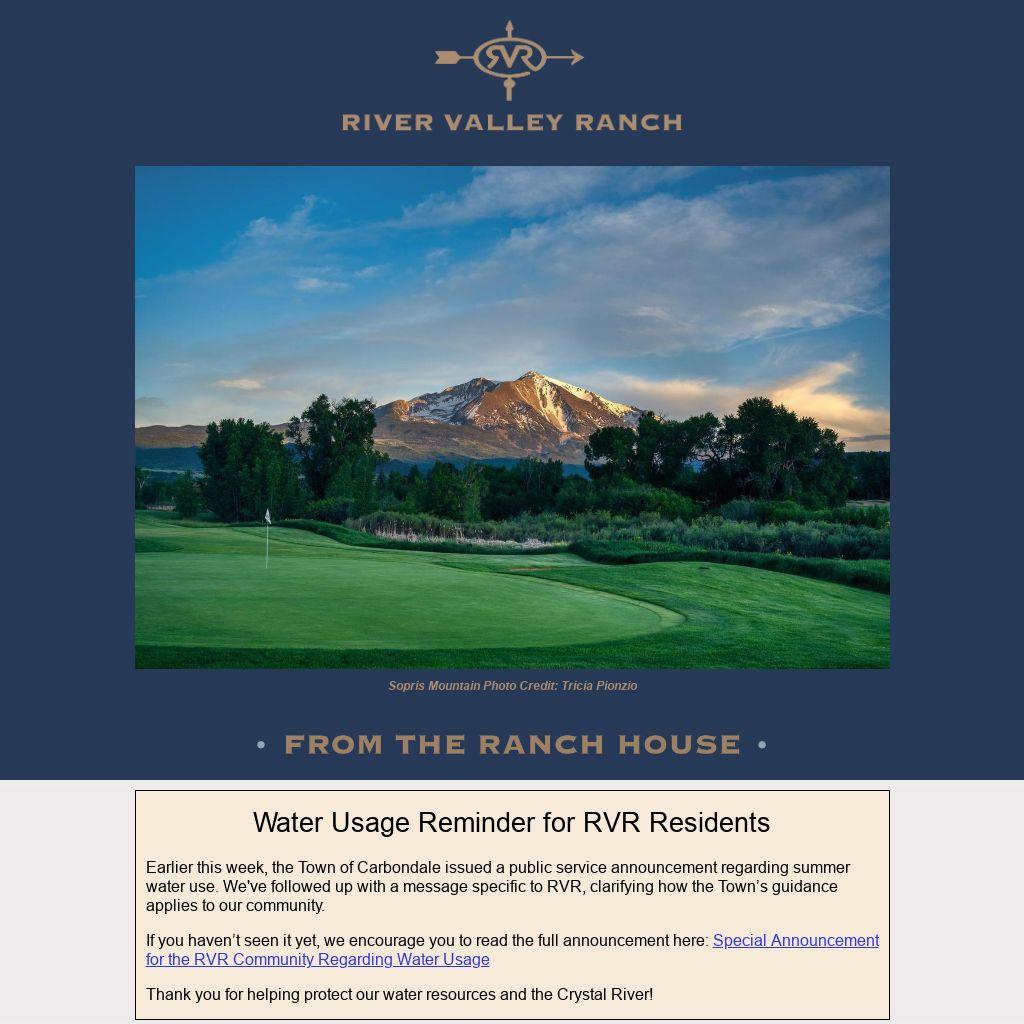 Earlier this week, the Town of Carbondale issued a public service announcement regarding summer water use. We've followed up with a message specific to RVR, clarifying how the Town’s guidance applies to our community.