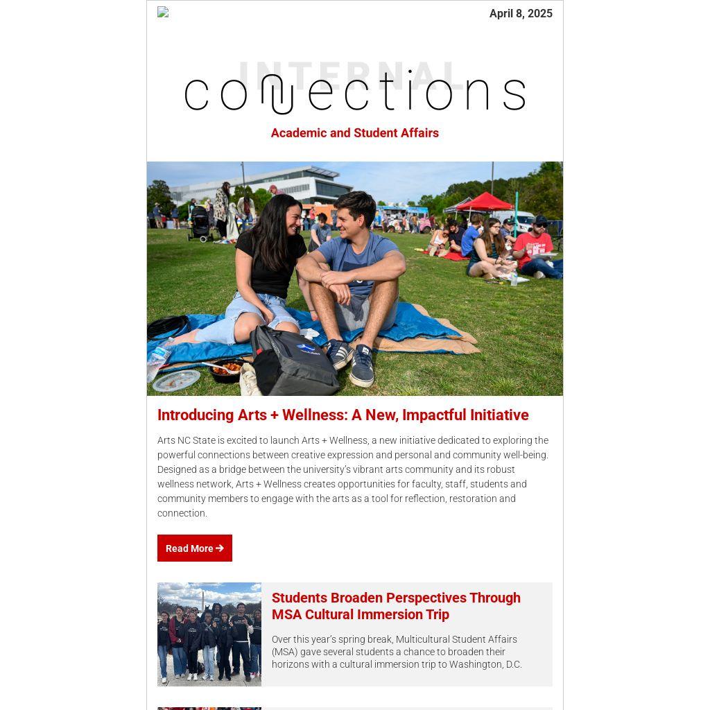 Arts NC State is excited to launch Arts + Wellness, a new initiative dedicated to exploring the powerful connections between creative expression and personal and community well-being. Designed as a bridge between the university’s vibrant arts community and its robust wellness network, Arts + Wellness creates opportunities for faculty, staff, students and community members to engage with the arts as a tool for reflection, restoration and connection.