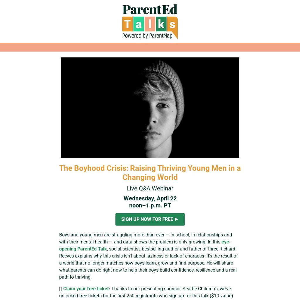 Boys and young men are struggling more than ever — in school, in relationships and with their mental health — and data shows the problem is only growing. In this eye-opening ParentEd Talk, social scientist, bestselling author and father of three Richard Reeves explains why this crisis isn’t about laziness or lack of character; it’s the result of a world that no longer matches how boys learn, grow and find purpose. He will share what parents can do right now to help their boys build confidence, resilience and a real path to thriving.