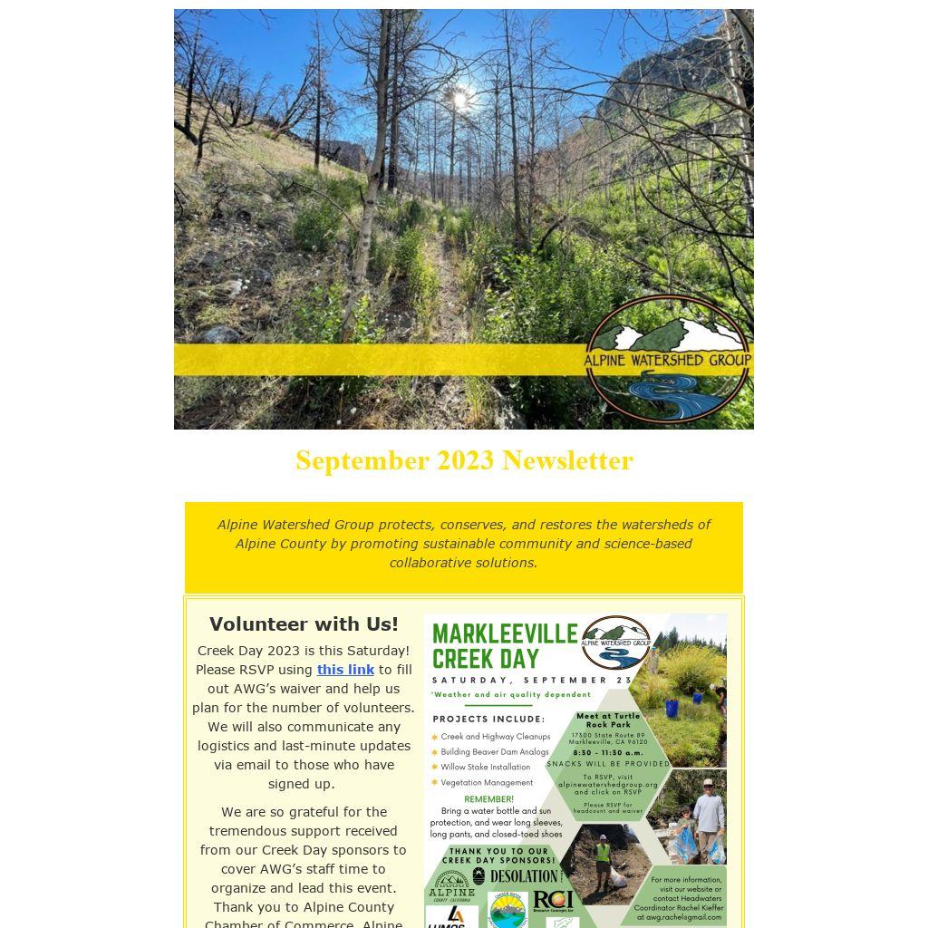 Creek Day 2023 is this Saturday! Please RSVP using this link to fill out AWG’s waiver and help us plan for the number of volunteers. We will also communicate any logistics and last-minute updates via email to those who have signed up.