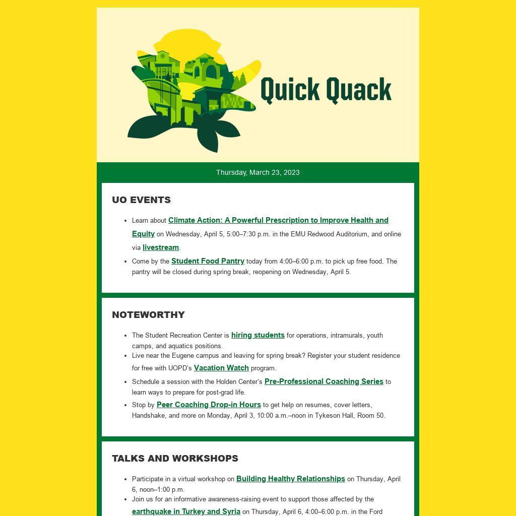That's a wrap on winter term! Quick Quack will be taking a break until Thursday, April 6.