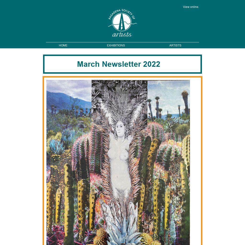 More exhibition opportunities are coming soon. Several exhibitions are in the planning stages, including an Artist’s Choice Exhibition at Whites Fine Art Gallery in the fall. Volunteers will be needed for the 97th Annual in-person take-in/jury March 19, the gallery installation May 2, and the Artist’s Reception the following weekend. If you are interested, please send an email to Exhibitions@PasadenaSocietyofArtists.org indicating what you would like to volunteer for.