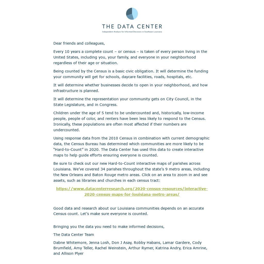 Good data and research about our Louisiana communities depends on an accurate Census count. Let’s make sure everyone is counted.