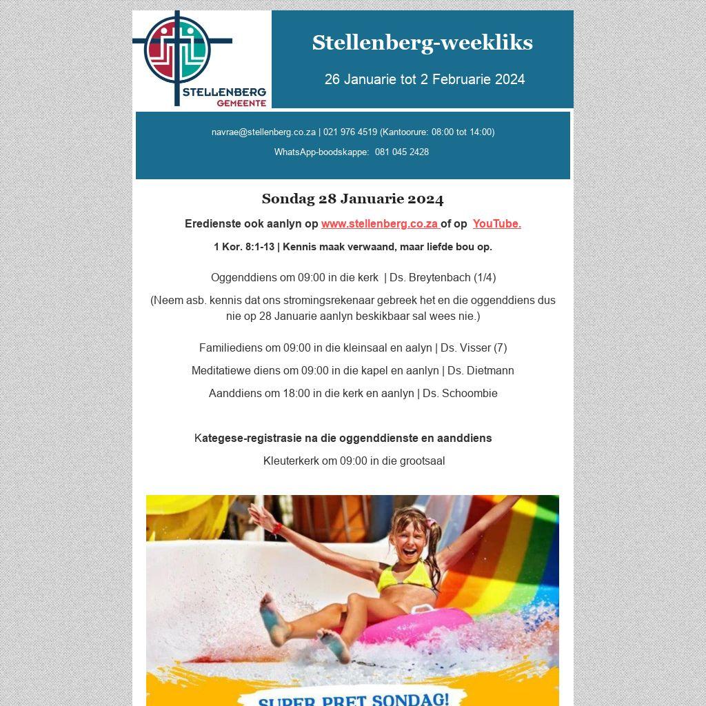 (Neem asb. kennis dat ons stromingsrekenaar gebreek het en die oggenddiens dus nie op 28 Januarie aanlyn beskikbaar sal wees nie.)