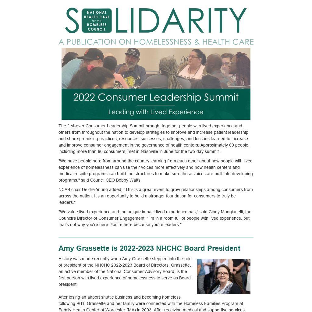 History was made recently when Amy Grassette stepped into the role of president of the NHCHC 2022-2023 Board of Directors. Grassette, an active member of the National Consumer Advisory Board, is the first person with lived experience of homelessness to serve as Board president.
