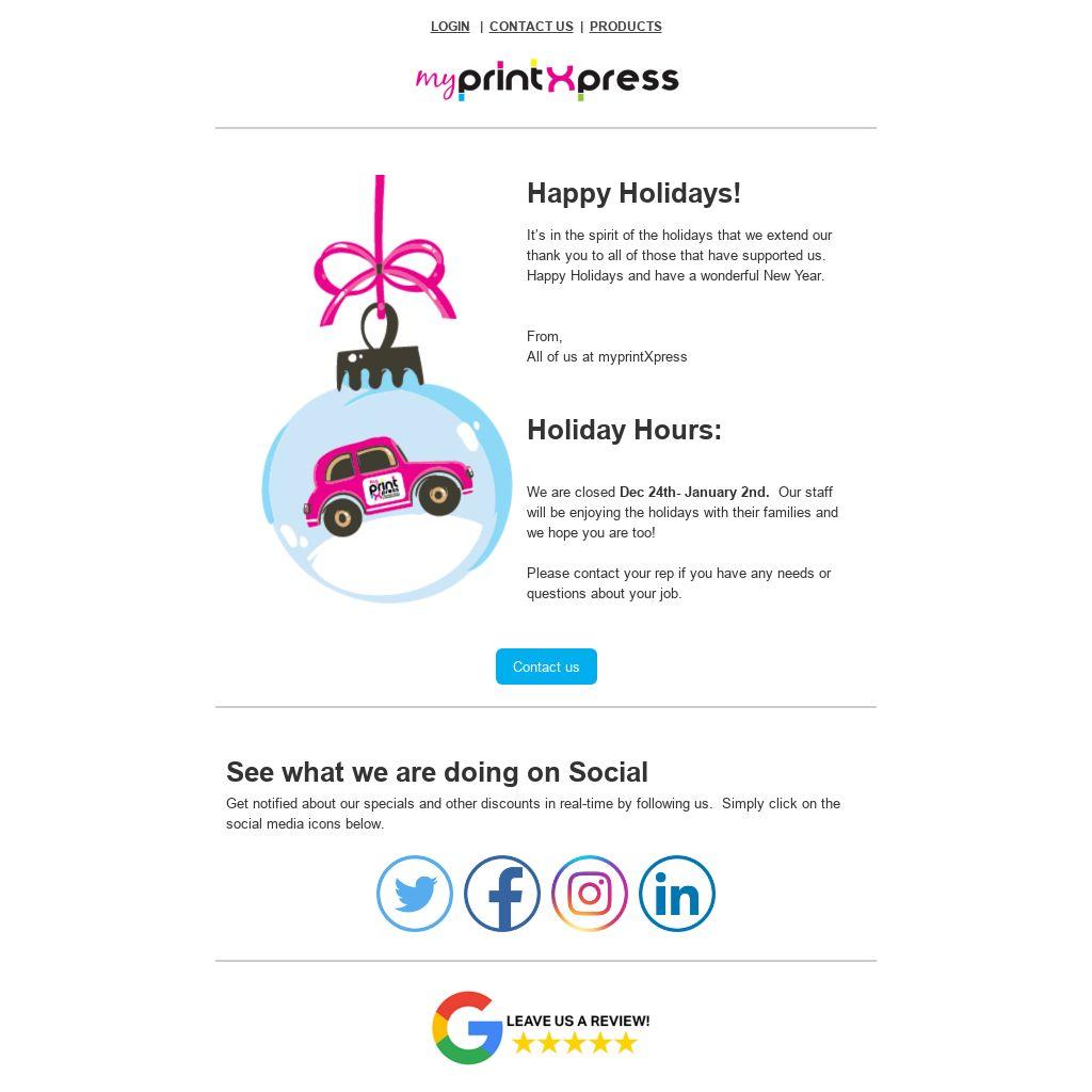 We are closed Dec 24th- January 2nd. Our staff will be enjoying the holidays with their families and we hope you are too!
