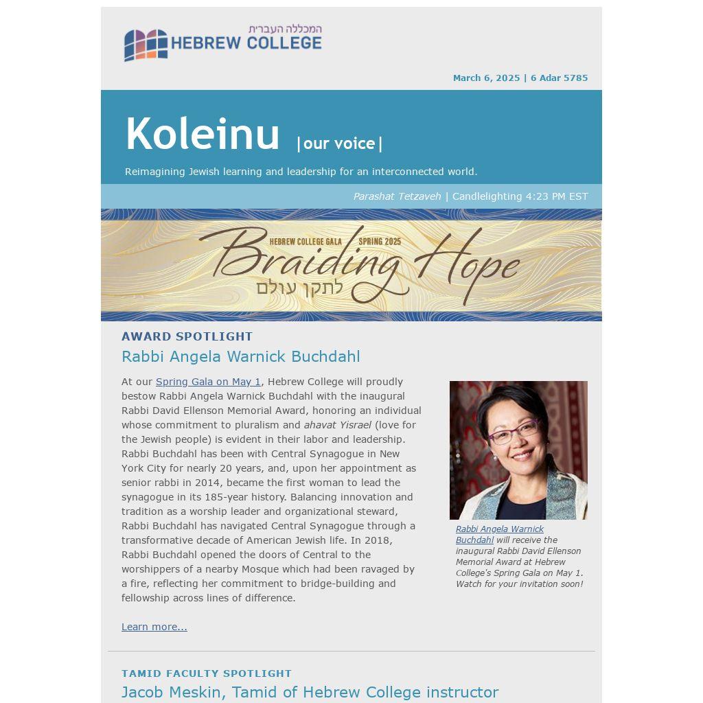 Join us to celebrate Hebrew College and our award recipients, Denise Sobel, Dr. Judith Rosenbaum, Rabbi Angela Warnick Buchdahl, and the Teplow Family.