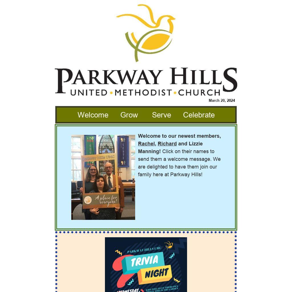 Rachel, Richard and Lizzie Manning! Click on their names to send them a welcome message. We are delighted to have them join our family here at Parkway Hills!