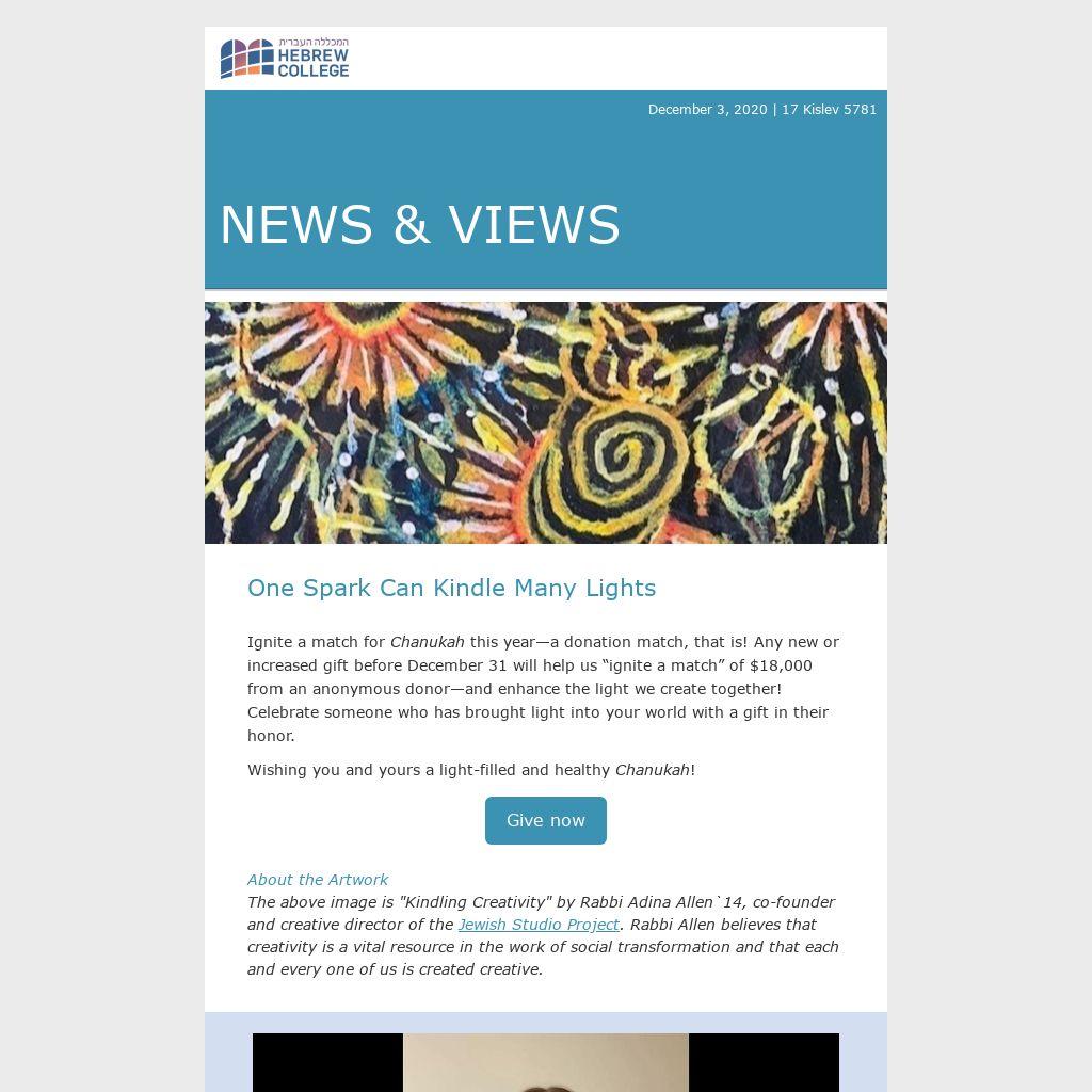 As we approach Chanukah, we are grateful for your love of Jewish learning, your participation in our classes and events, and your ongoing support for our work training future rabbis, cantors, and educators, and people at every stage of life who love to learn. Together, we are infusing Jewish life with substance, spirit, beauty, imagination, and a sense of purpose.