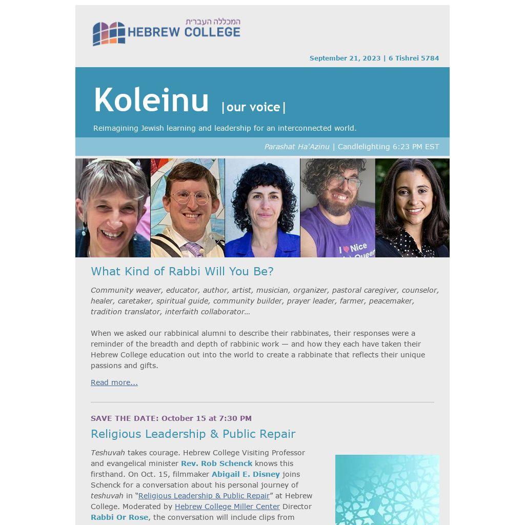 Ta Sh'ma (Come & Hear) Fall Ordination Programs Open Houses Experience the vibrant pluralistic communities of Hebrew College’s pioneering rabbinical, cantorial, and rav-hazzan programs. In-person and virtual options. November 13 | Hebrew College