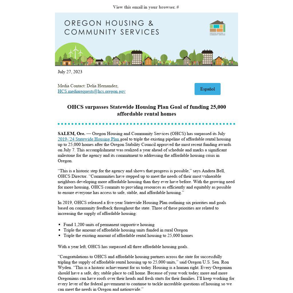 “OHCS stands fully supportive of this audacious goal and pledges to enhance its capacity, foster learning, and collaborate with partners across the state to realize this vision,” said Bell. “This accomplishment would not have been possible without the unwavering support and dedication of the agency’s partners throughout the state. We are grateful to developers, community-based organizations, culturally specific partners, legislators, property owners, property managers, non-profits, educational institutions, Tribal Nations, architects, contractors, and local, state, and federal agencies for their invaluable contributions.”