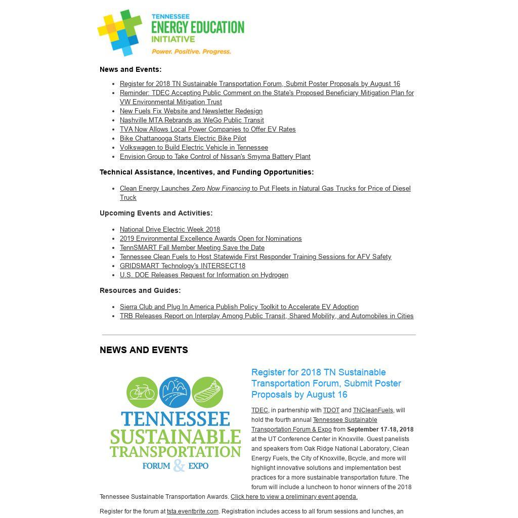 | Register for 2018 TN Sustainable Transportation Forum, Submit Poster Proposals by August 16