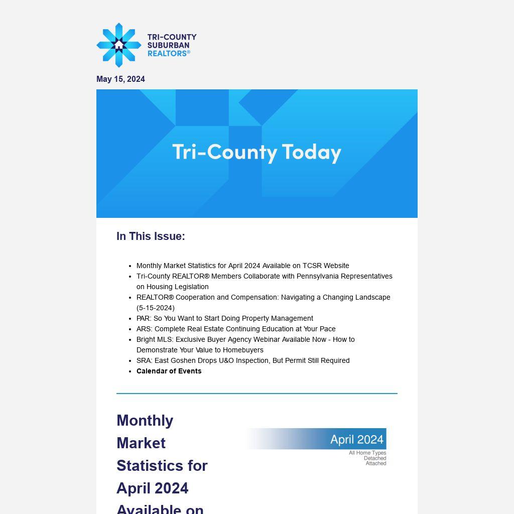 - Monthly Market Statistics for April 2024 Available on TCSR Website