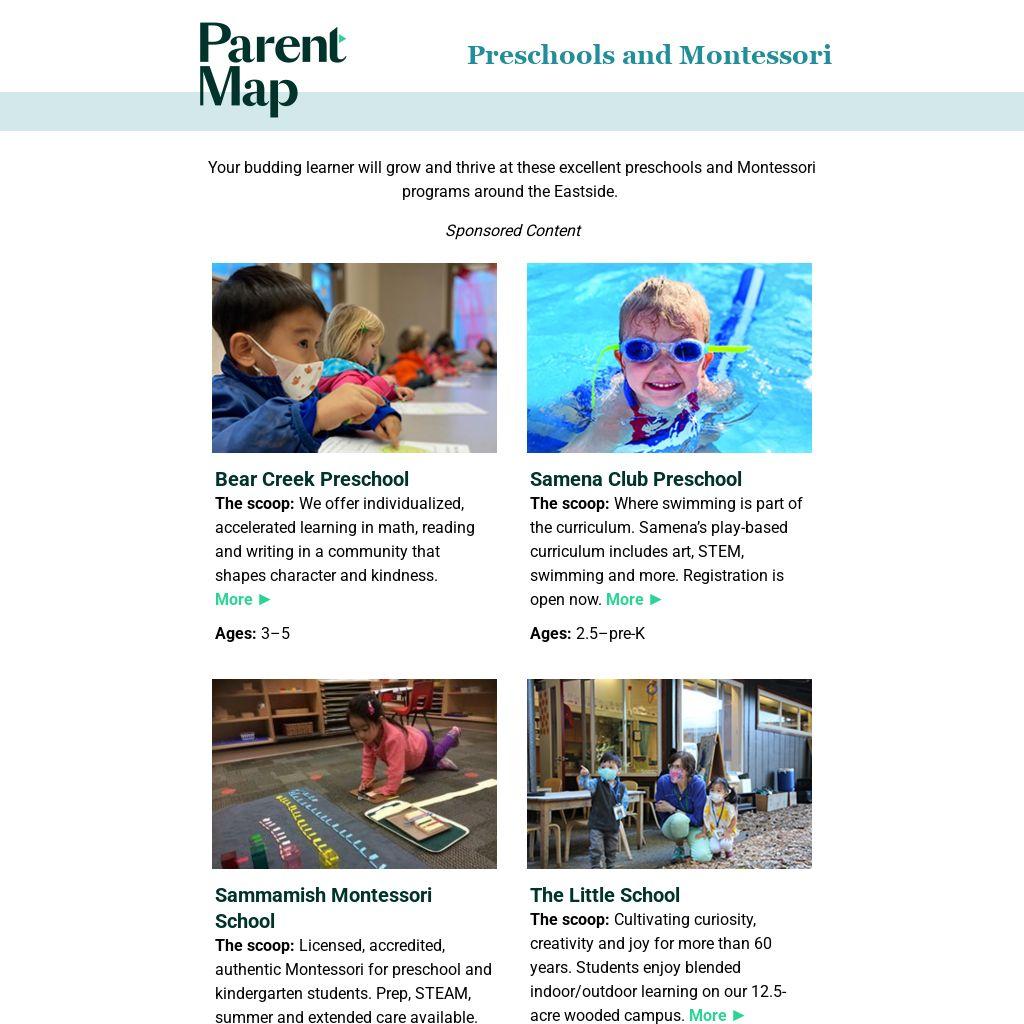 Explore ParentMap’s free Preschool Preview app to find the perfect fit for your child. Discover more than 45 interactive preschool booths, watch recorded school info sessions and more. Start your school search here!
