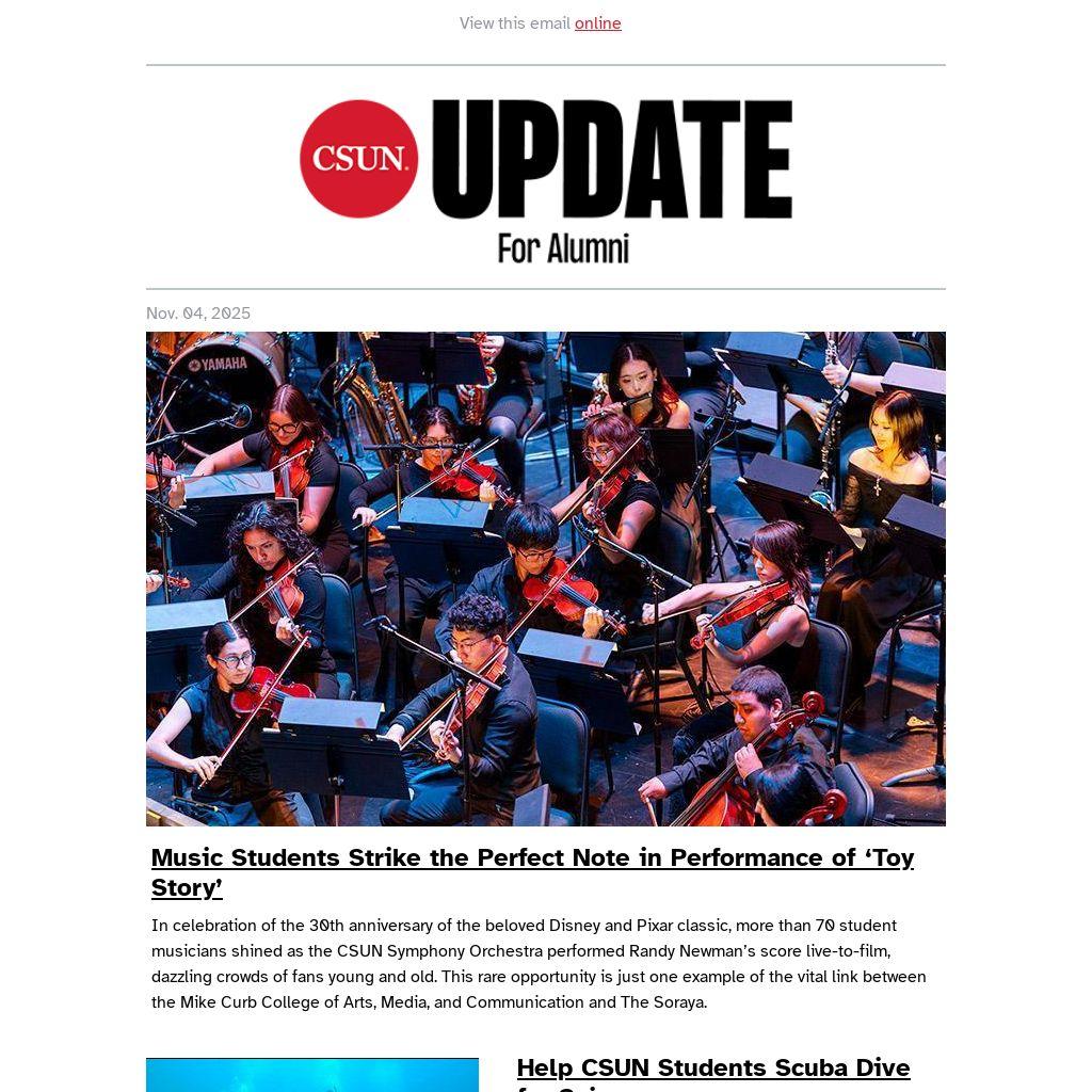 In celebration of the 30th anniversary of the beloved Disney and Pixar classic, more than 70 student musicians shined as the CSUN Symphony Orchestra performed Randy Newman’s score live-to-film, dazzling crowds of fans young and old. This rare opportunity is just one example of the vital link between the Mike Curb College of Arts, Media, and Communication and The Soraya.