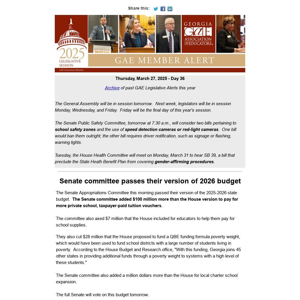 Archive of past GAE Legislative Alerts this year