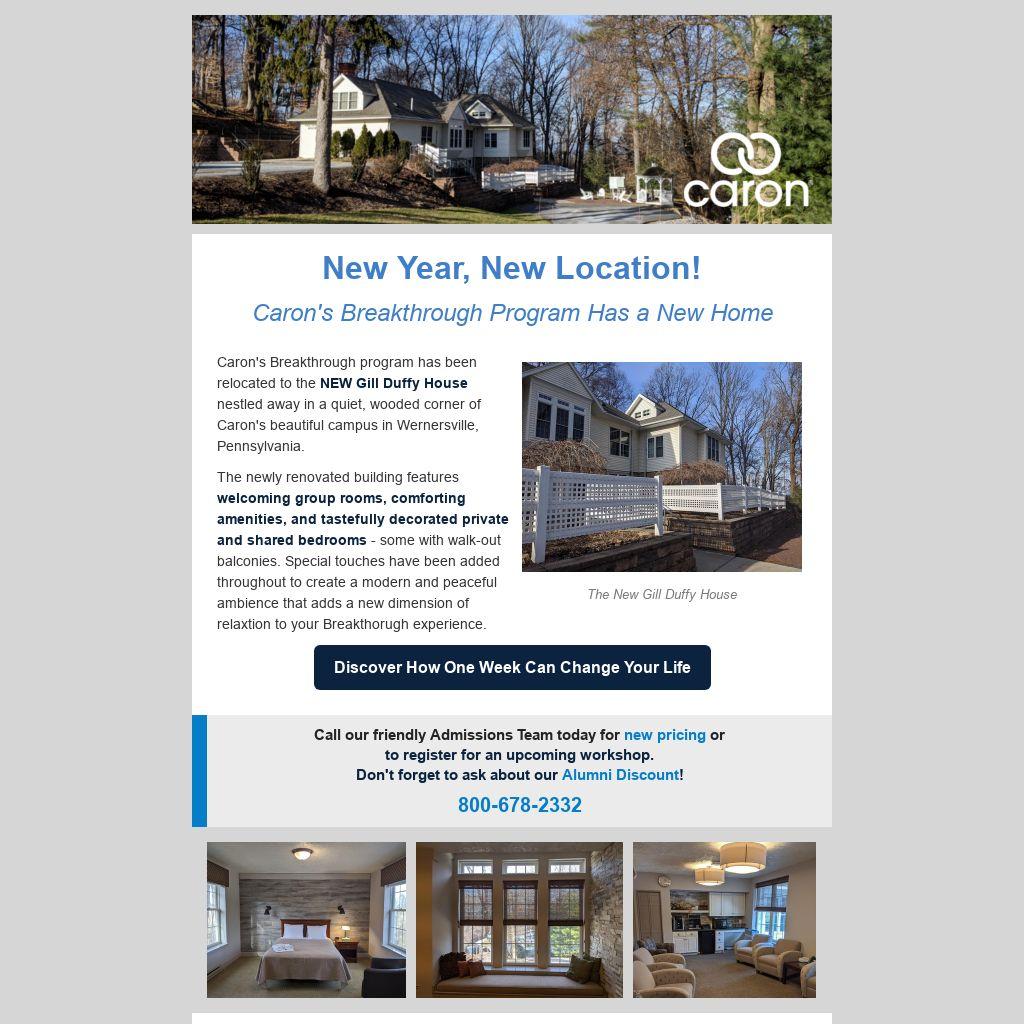 Caron's Breakthrough program has been relocated to the NEW Gill Duffy House nestled away in a quiet, wooded corner of Caron's beautiful campus in Wernersville, Pennsylvania.