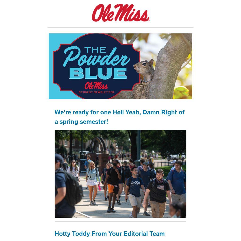 To contact us or submit content, events or announcements, email thepowderblue@olemiss.edu. Interested in receiving this newsletter? Use this sign-up link to receive The Powder Blue in your inbox every Tuesday.