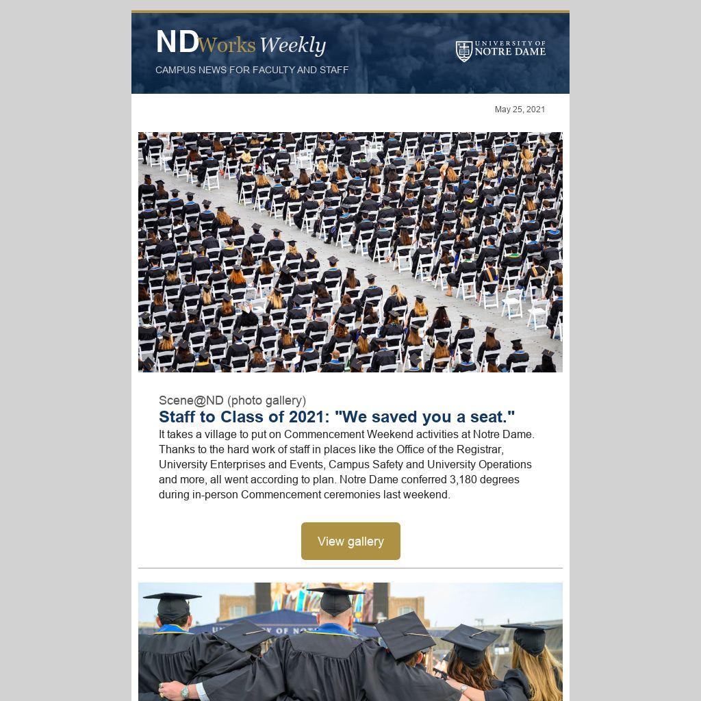 Scene@ND (photo gallery)Staff to Class of 2021: "We saved you a seat."