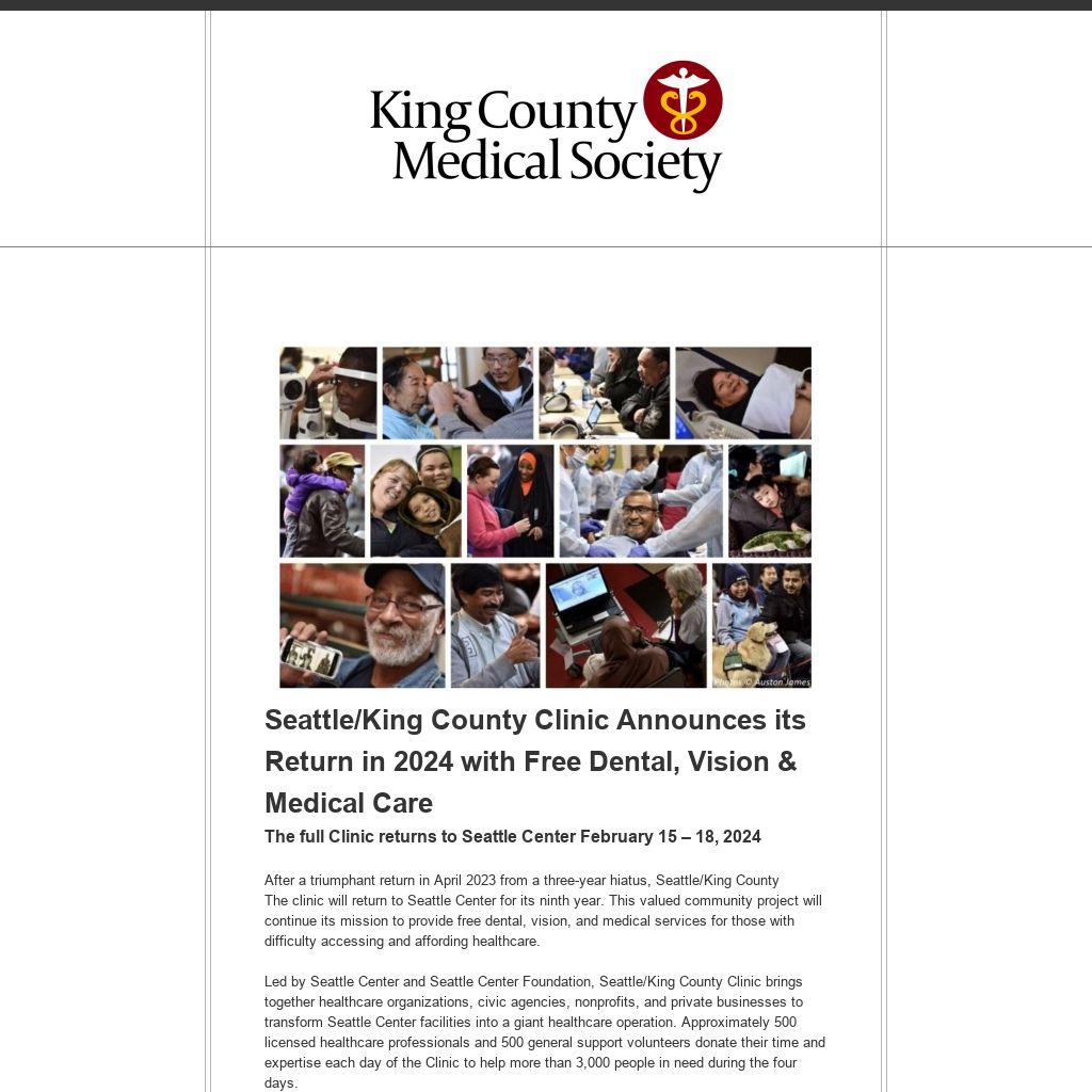 Seattle/King County Clinic Announces its Return in 2024 with Free Dental, Vision & Medical Care